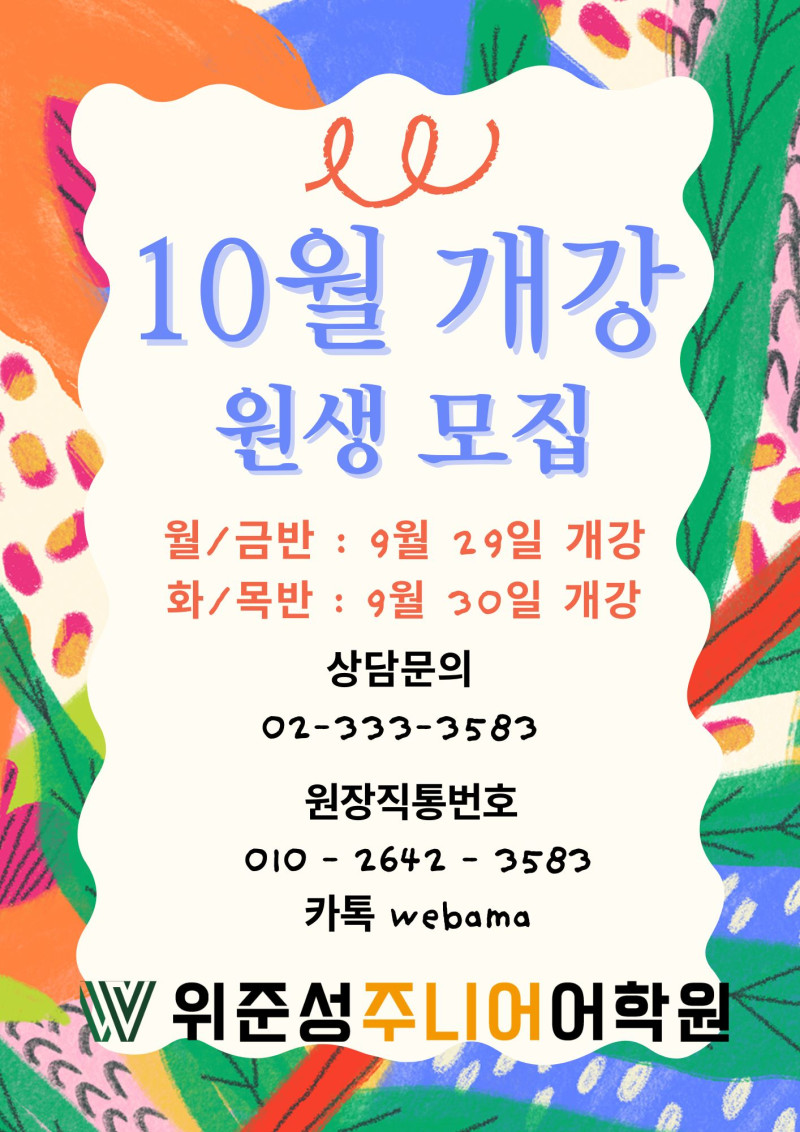 위준성주니어어학원 10월 개강 안내