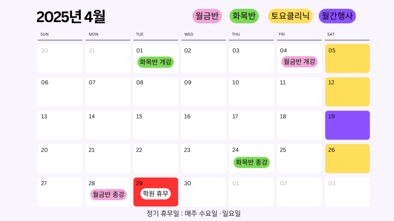 4월 학사일정 안내드립니다.