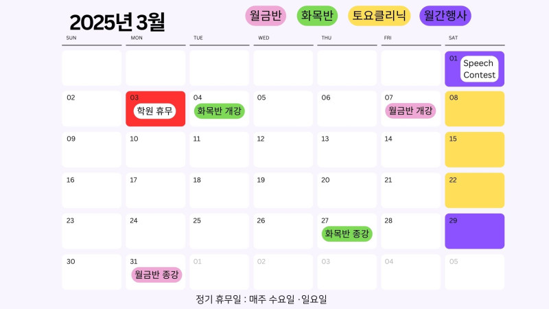 3월 학사일정을 안내드립니다.
